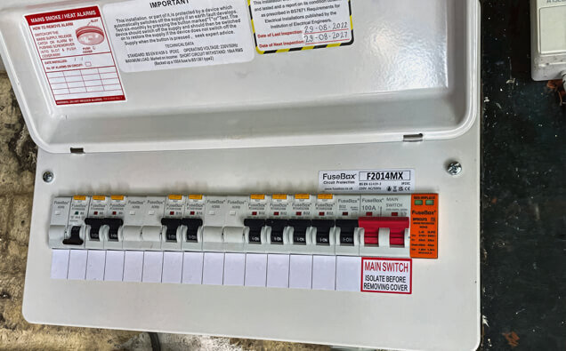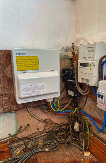 Replacement of outdated or unsafe metre panels, fixing of exposed wiring, damaged enclosures, and non-compliant circuit protection.